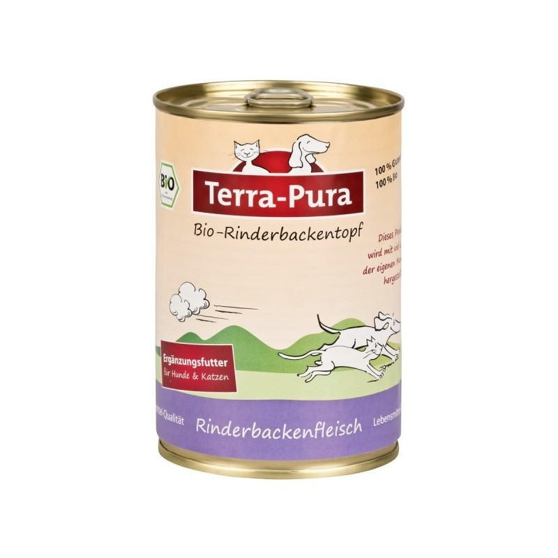 Terra-Pura 400g a base de carrillera de ternera procedente de la cría orgánica.